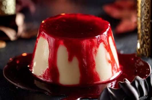 Para los amantes del terror, este “Pudín de Sangre” es el postre ideal. Aunque parece dramático, es uno de los Postres de Halloween Fáciles más sencillos, ya que utiliza la intensidad del color rojo de forma creativa.