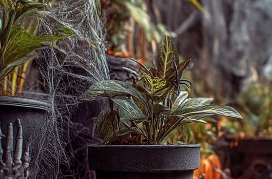 Ideal para quienes ya tienen muchas plantas en casa y quieren darles un toque de Halloween, integrando la decoración de Halloween sencilla a la decoración existente.