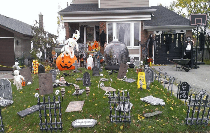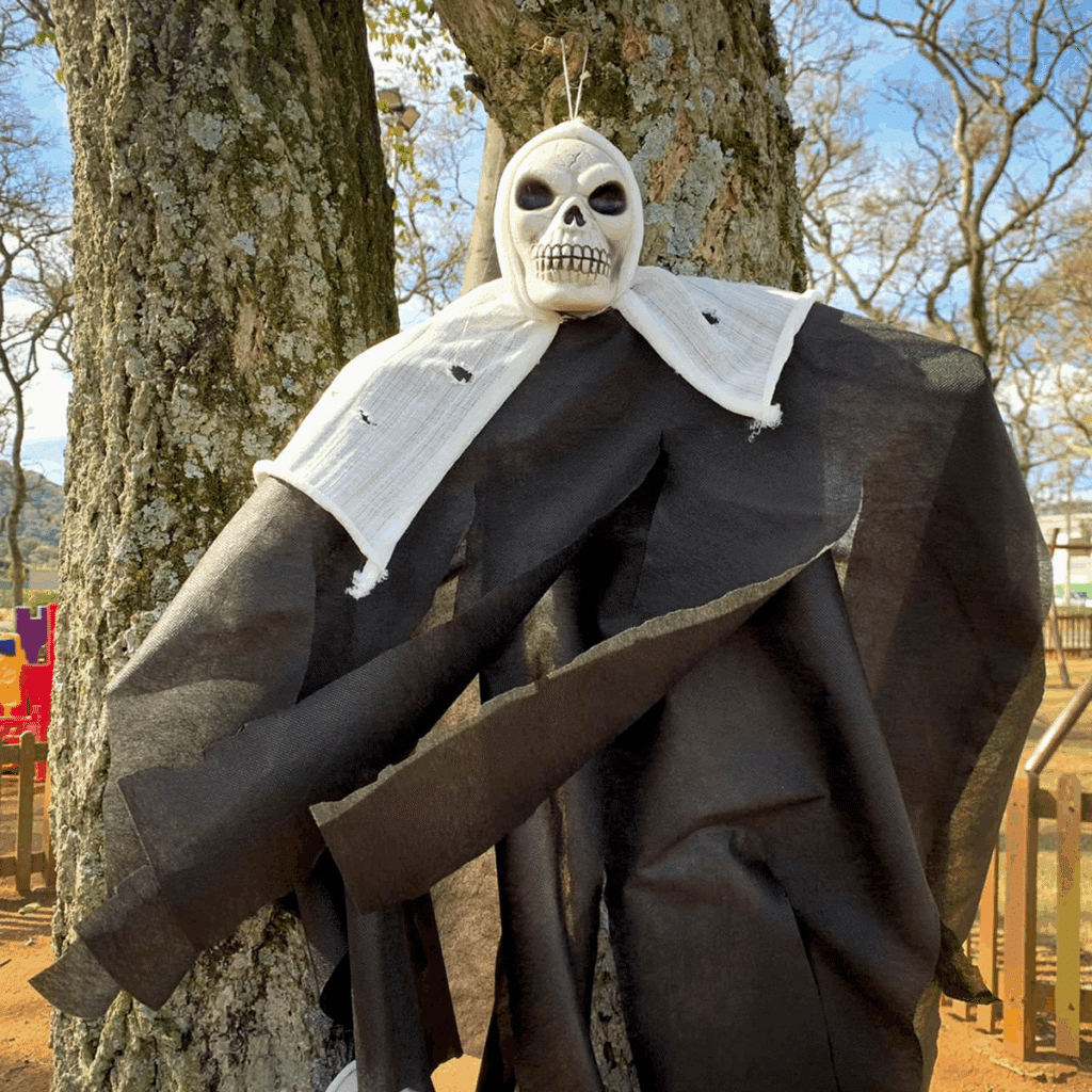 Con muΓ±ecos viejos o maniquΓes, puedes formar figuras de zombis saliendo del suelo, brujas cocinando una pΓ³cima, o fantasmas flotando con hilo transparente.